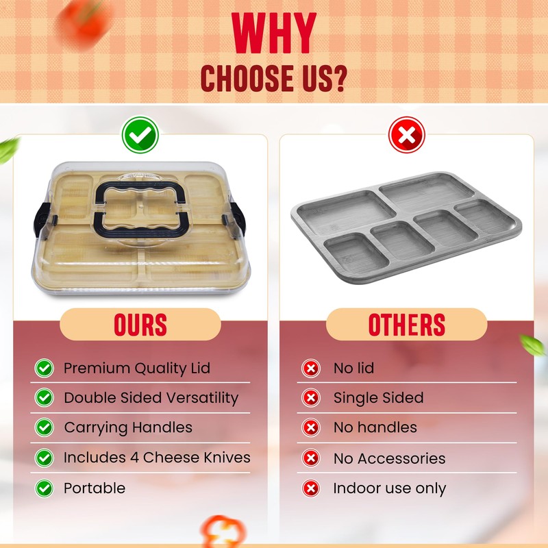 - ✔️ Portable & Travel-Ready with Locking Lid Take your charcuterie on the go! This cheese board features a secure buckle-locking lid, keeping your snacks fresh and neatly packed—perfect for picnics, parties, and outdoor gatherings.