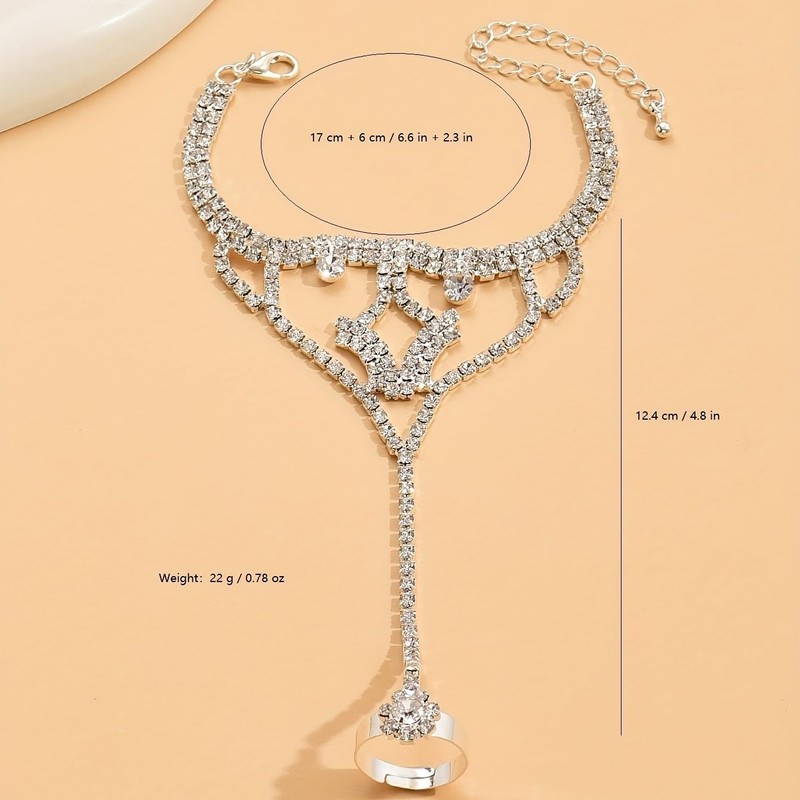 - ✿ Elegant Rhinestone Bridal Finger Ring Bracelet, a wonderful jewerly for your wedding, important occasions and daily outfit.