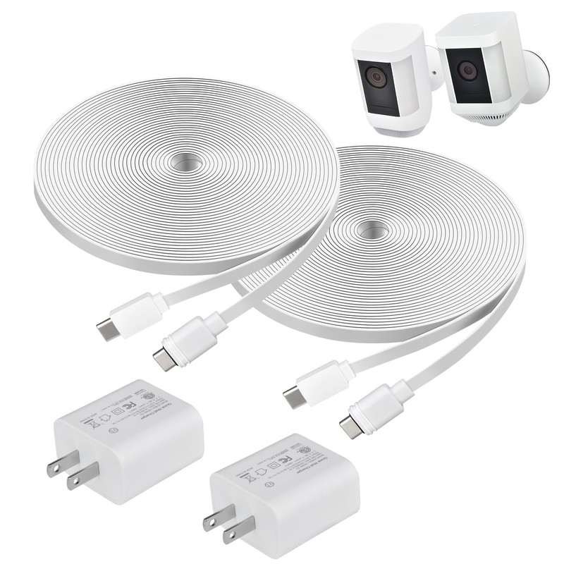 Charge Cable with Power Adapter for Spotlight Cam Pro (Battery) and Spotlight Cam Plus (Battery), 20ft. Power Charge Cable with Power Adapter for Camera, White, 2-Pack