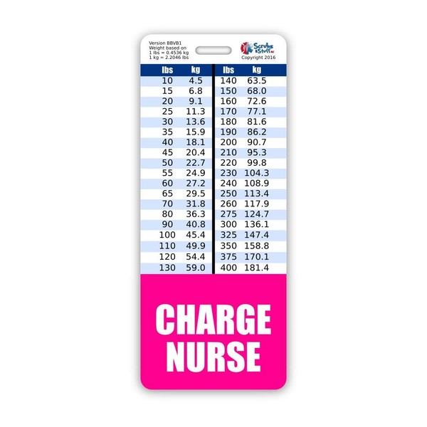 Charge Nurse Badge Buddy Vertical w/Height & Weight Conversion Charts (Oversized, Pink)