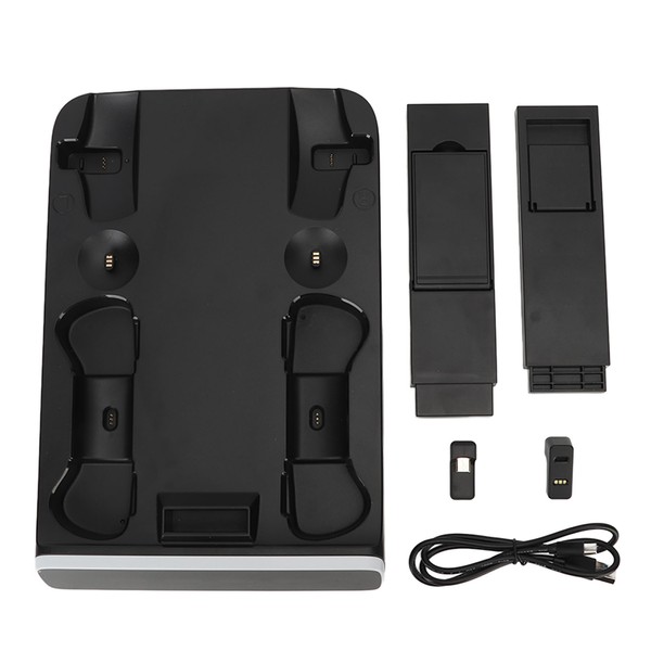 1、Suitable For: Charger base is specially designed for VR2 controller and for PS5 console, which can bring you much convenient. 2、Input Output: Charging station can hold 2 controllers simultaneously, which can provide DC 5V2.5A input and 600mAh output. 3、Easy To Use: After install the charging adapter, you just need to place the controller on the charging stand for quickly charging. 4、Indicator Design: Charger stand with indicator light, which display red when charging, and the blue indicator light is on when full charged. 5、Storage Stand: Charging stand stores all your headsets and controllers in one place to keep your gaming area tidy.
