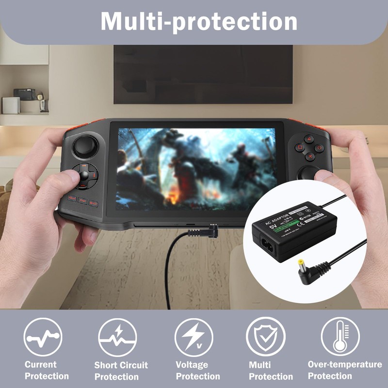 - CHARGING SAFETY Equipped with built-in safeguards against overcharge, over-voltage and short circuit, this PSP charger protects your console battery and extends the service life. The stable voltage control technology guarantees safe charging even during prolonged use