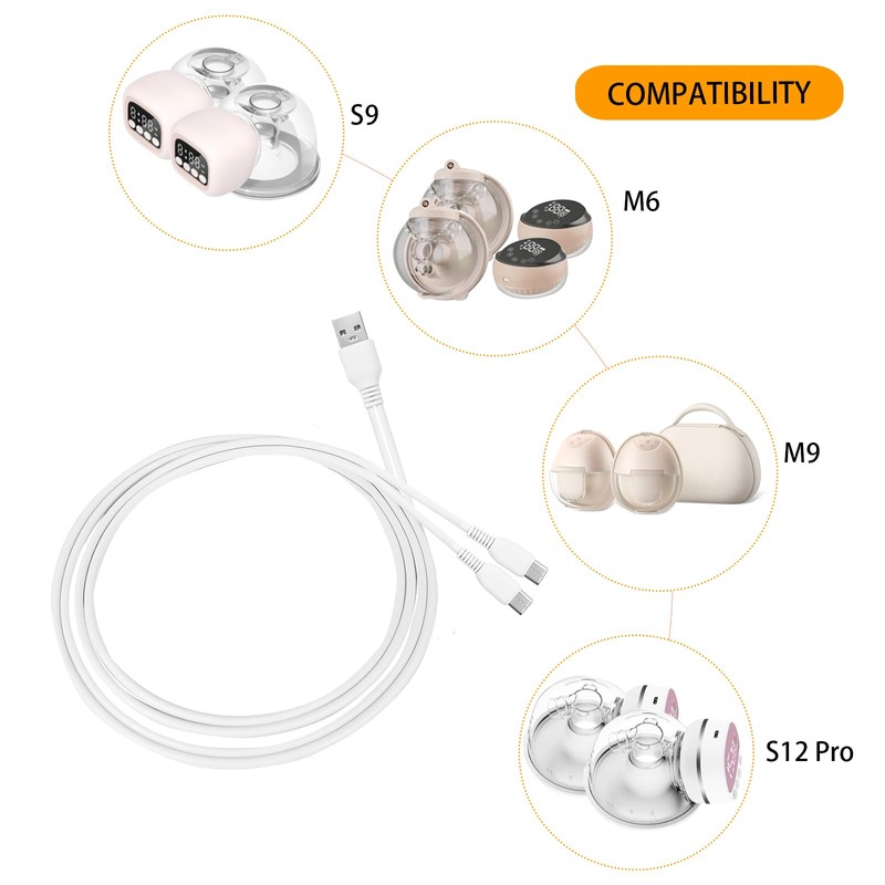 - Y-Splitter Cable: 1 PCS, 3.2ft (100cm) long, supports 2 breast pumps to be charged simultaneously.