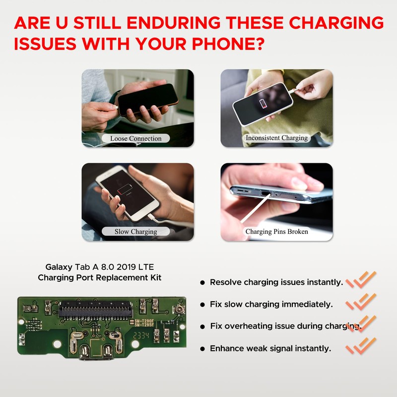 - 【Compatibility Check】 This charging port replacement is only compatible with Samsung Galaxy Tab A 8.0 2019 LTE tablet, models SM-T295. Please confirm your tablet model before purchasing to ensure a proper fit.