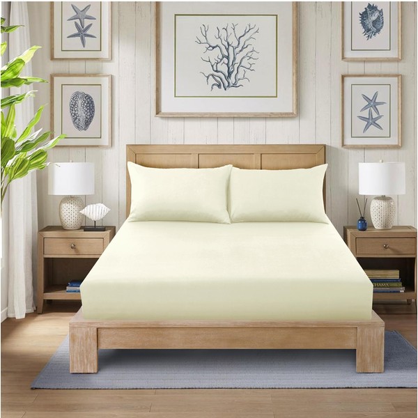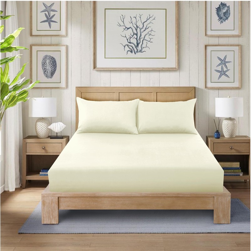 CHARKHAH Polycotton Fitted Sheet for Single Double King Super King Bed 200 Thread Count Anti Wrinkle Plain Bedding 25 cm Extra Deep Fitted Sheets Cover with Elastic Edges (Cream, Single)