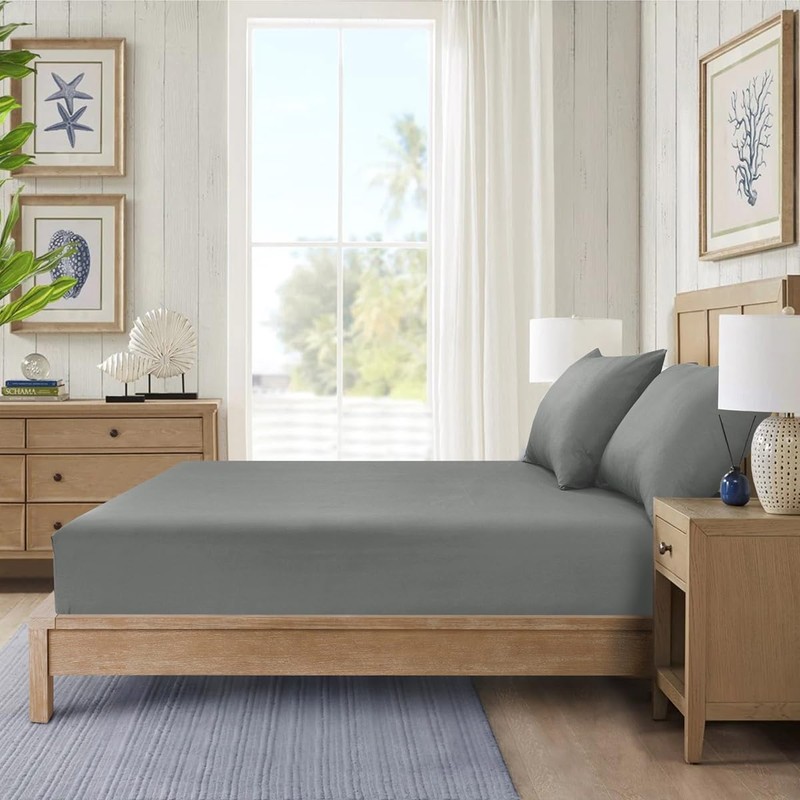 CHARKHAH Polycotton Fitted Sheet for Single Double King Super King Bed Anti Wrinkle Plain Bedding 25 cm Extra Deep Fitted Sheets Cover with Elastic Edges (Grey, 40CM-Single)