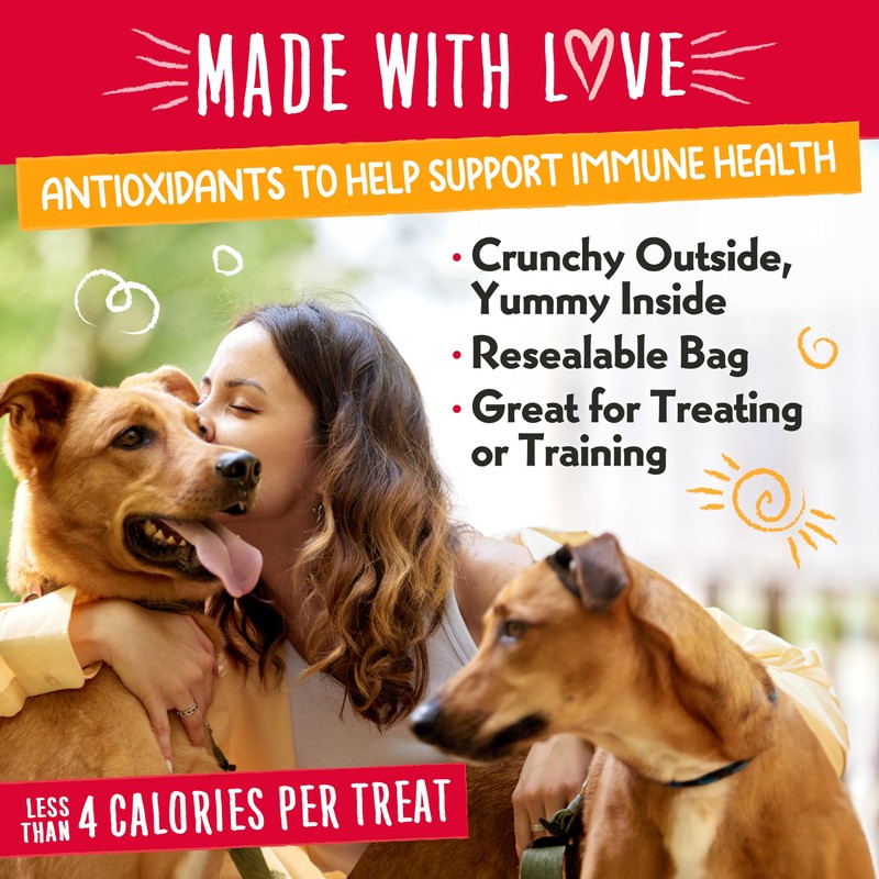 - Low Calorie Dog Treats: With less than 4 calories each, these treats are ideal for rewarding good behavior or as a guilt-free snack. Our dog snacks ensure are sized perfectly for dog treat dispensing toys, dog treat ball, or dog puzzle toy.