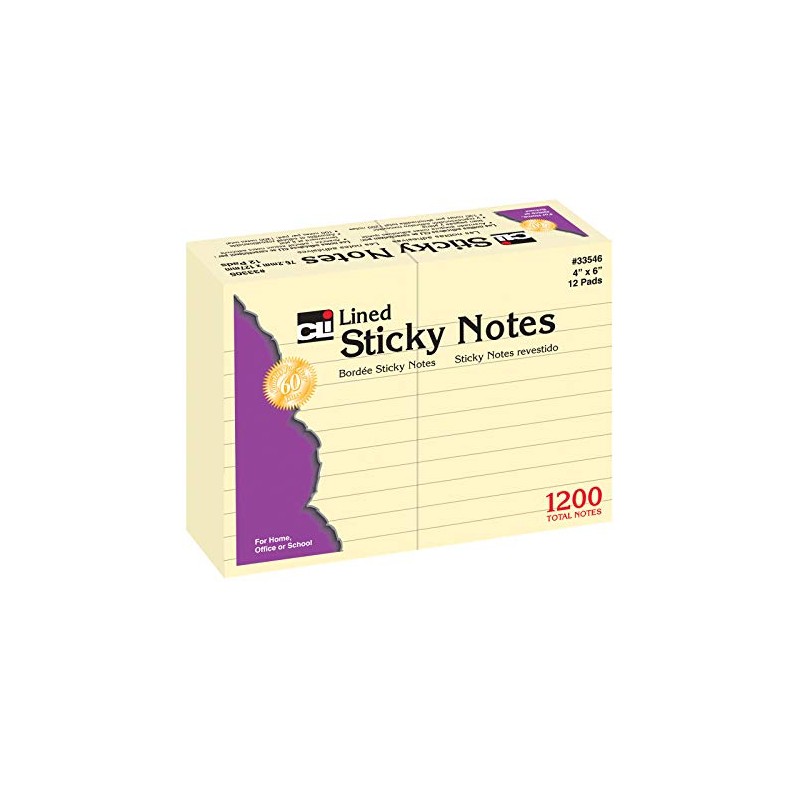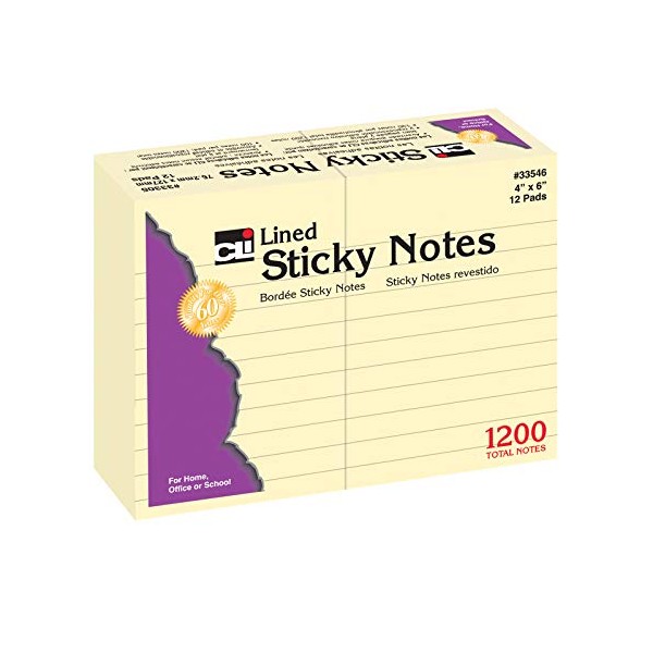 Charles Leonard Sticky Notes, 4 x 6 Inch, 100 Sheets per Pad, Yellow, 12 Pack (33546)