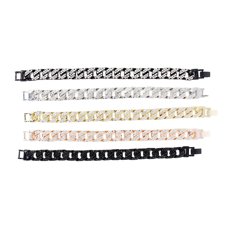 Charles Raymond Mens Womens CZ Miami Cuban Link Hip Hop Iced Out Curb Cuban Bracelet with Clear Rhinestones (B/White)