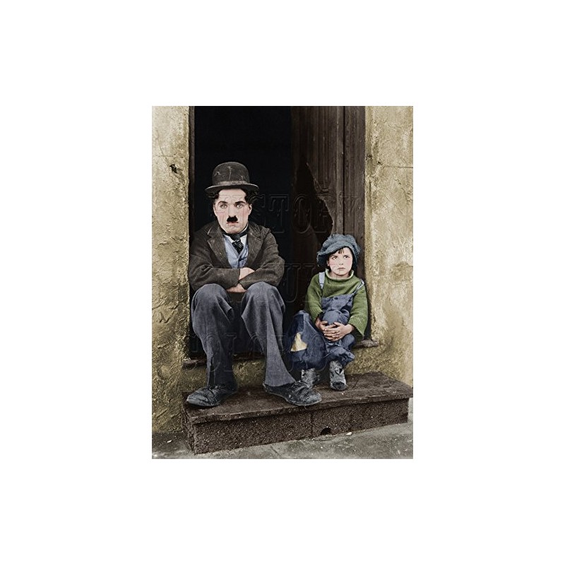 The watermark will not be printed. --- You have your choice of size and finish for the photo. Note that the size you choose may require cropping and the finished image may appear slightly different than the one shown. If you would like to see how a specific image will look for the size you have chosen, please contact us and indicate the size you are interested in. ------ Matte Finish: E-Surface Photo Paper is by far our most popular photographic paper. As a professional paper, it boasts rich, sharp color that won't fade or yellow, creating beautiful prints that will last for years to come. ------ Glossy (Metallic) finish: Our Metallic Photo Paper features a unique pearlescent surface. It offers highly saturated colors, ultra-bright backgrounds, and will last a lifetime with typical home storage. Each image is taken from a high resolution negative and then cleaned of blemishes, damage, scratches, and whatever the decades have caused. Then the image is carefully brought back to life by adding color to the black and white image. By using these techniques the hands of time are turned back and for the first time you can see the images in color as they might have been on the day they were taken. ----- Charlie Chaplin and Jackie Coogan starred in this 1921 comedy. It was the 2nd highest grossing film of the year and remains a classic. The movie, Chaplain's first full length feature, told the story of a child abandoned by his mother who leaves a note to care for the boy and found by "The little tramp". For five years the little tramp cares for the boy. The mother in the meantime becomes a wealthy star and does charity work among the poor, actually meeting her son but not recognizing him. When the boy becomes sick he is taken to the doctor who discovers that he is not the son of the tramp. The doctor shows the mothers note to the police and she offers a reward for his return. After spending the night in a flophouse the owner recognizes the