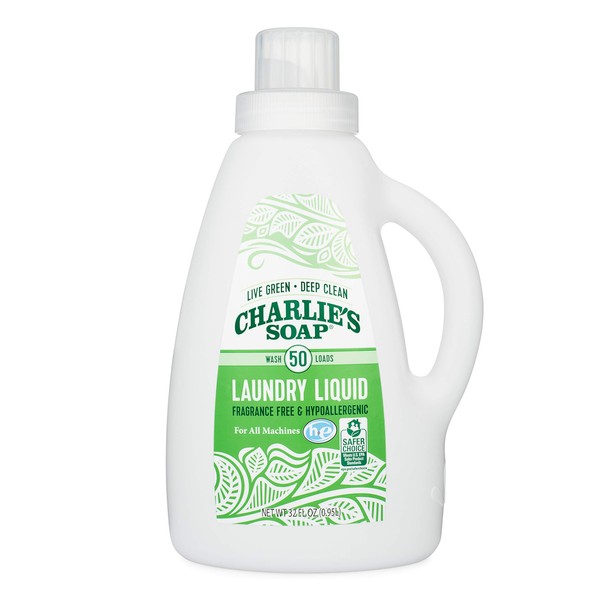 Charlie’s Soap Laundry Liquid (50 Loads, 1 Pack) Natural Deep Cleaning Hypoallergenic Laundry Detergent – Safe, Effective and Non-Toxic