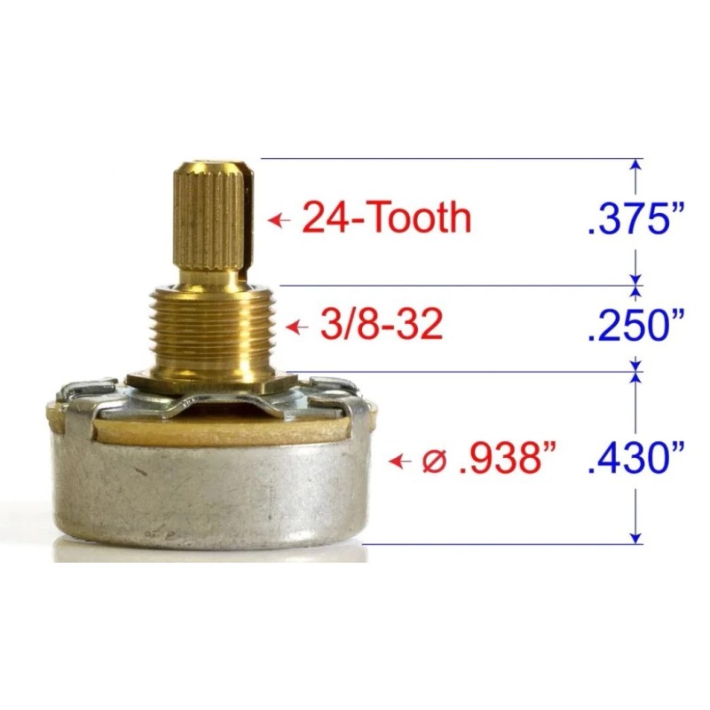 - Rear = 250k/500k stacked (dual potentiometer for mid & bridge)
