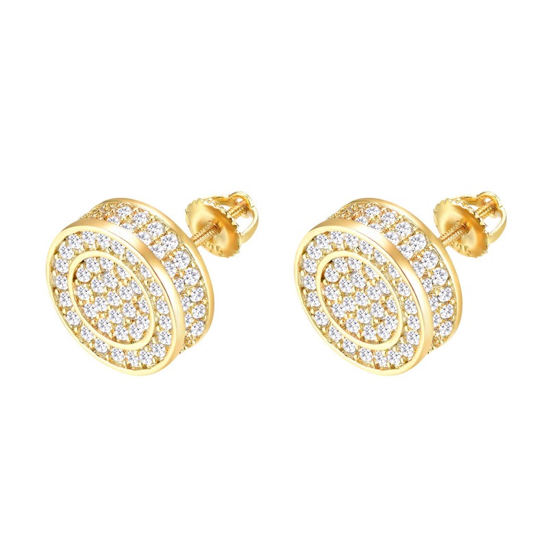 Charlinliol Hip hop Iced out 925 Sterling Silver with Prong Setting CZ Stones Double Tone Cylinder-Shaped Ear Studs For Men and Women