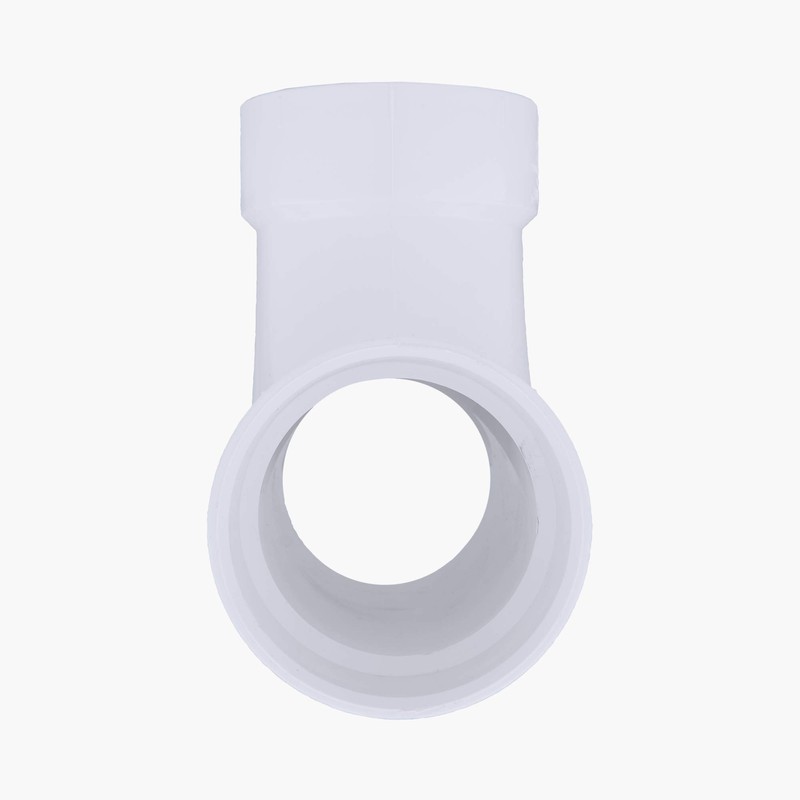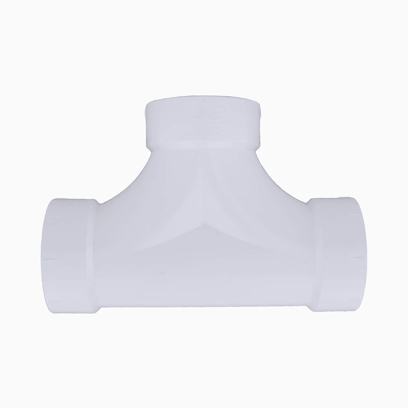 - White fittings used in sanitary drain, waste, and vent (DWV), sewer and storm drainage applications