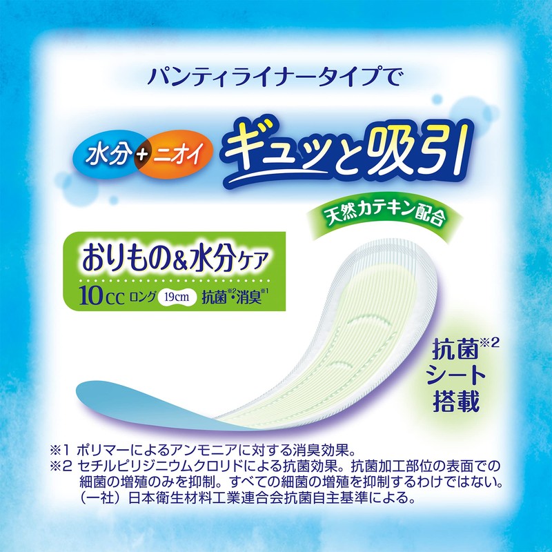 - Absorption: 0.3 fl oz (10 cc); Length: 7.5 inches (19 cm); Size Guide: Long panty liner size