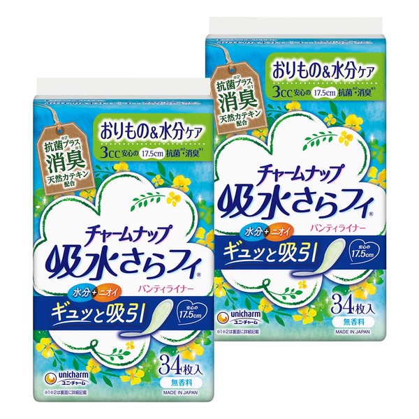Charm Nap Absorbent Sarafi Panty Liner, 0.1 fl oz (3 cc), Deodorizing Type, Unscented, 34 Sheets x 2 Packs