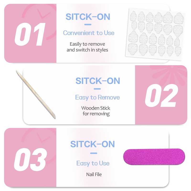 - Convenient and practical for many occasions: These semi-handmade fake nails are ideal for use in public places, such as parties, weddings, birthdays, concerts, art galleries, food festivals and other festivals. All you need to do is clean your fingers, choose a nail plate that fits your fingernail, remove the plastic seal and press against your finger for 30 seconds.