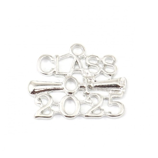 Charmed By Dragons 10 Class of 2025 Charms - Silver Tone - 25mm - School Graduating Class Jewelry Craft Charms