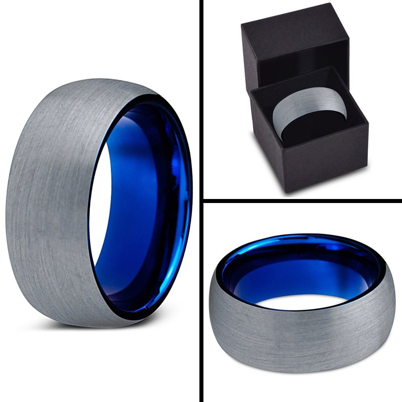 Charming Jewelers Tungsten Wedding Band Ring 8mm for Men Women Comfort Fit Blue Round Domed Brushed Size 11