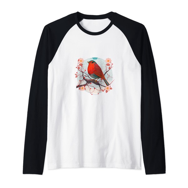 Charming Red Robin Cherry Blossom Branch with Cute Design Raglan Baseball Tee