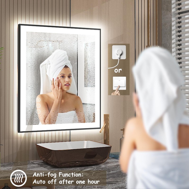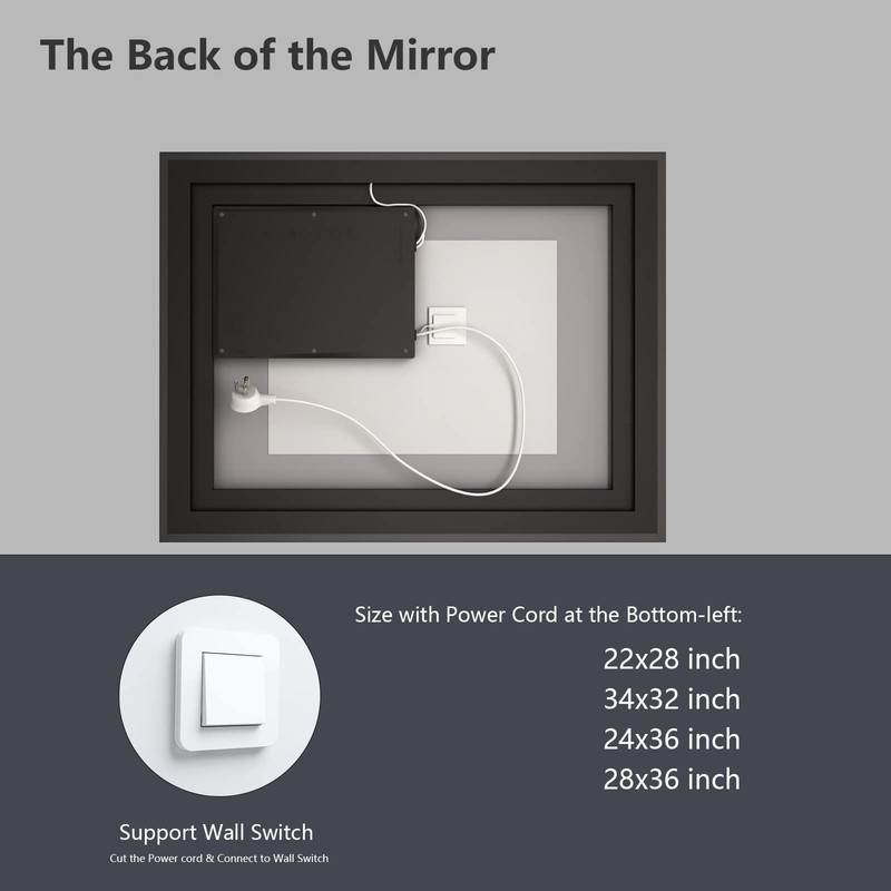 • 【Vanity Mirror with Defogging System】With anti-fog function, our bathroom mirrors can quickly remove the water vapor on the mirror surface and maintain a clear and transparent state. No need to wipe the mirror after bathing. Free your hands. Anti-fog feature will auto off after one hour.