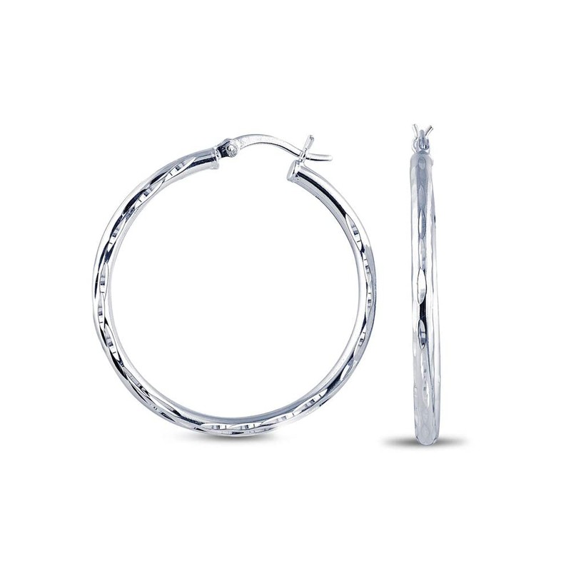 Charmsy 925 Sterling Silver Diamond-Cut Hoop Earrings 2.5mm Tube Small Italian Classic Click-Top for Women 20mm