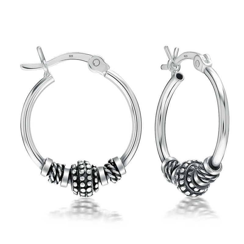 Charmsy 925 Sterling Silver Jewelry Antique Light Weight Bali Hoop Earring for Women, Sterling Silver, No Gemstone