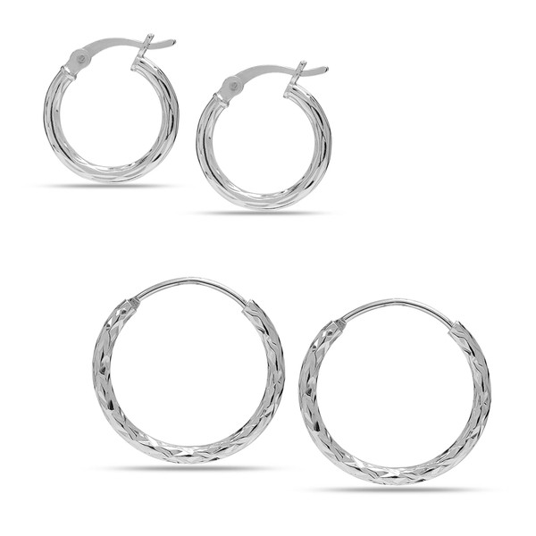 Charmsy 925 Sterling Silver Textured Diamond-Cut Click-Top Hoop Earrings for Teen Women | Set of 2 Pairs Classic Italian Design Endless Small Hoops Earring Trendy Jewelry 15MM 20MM