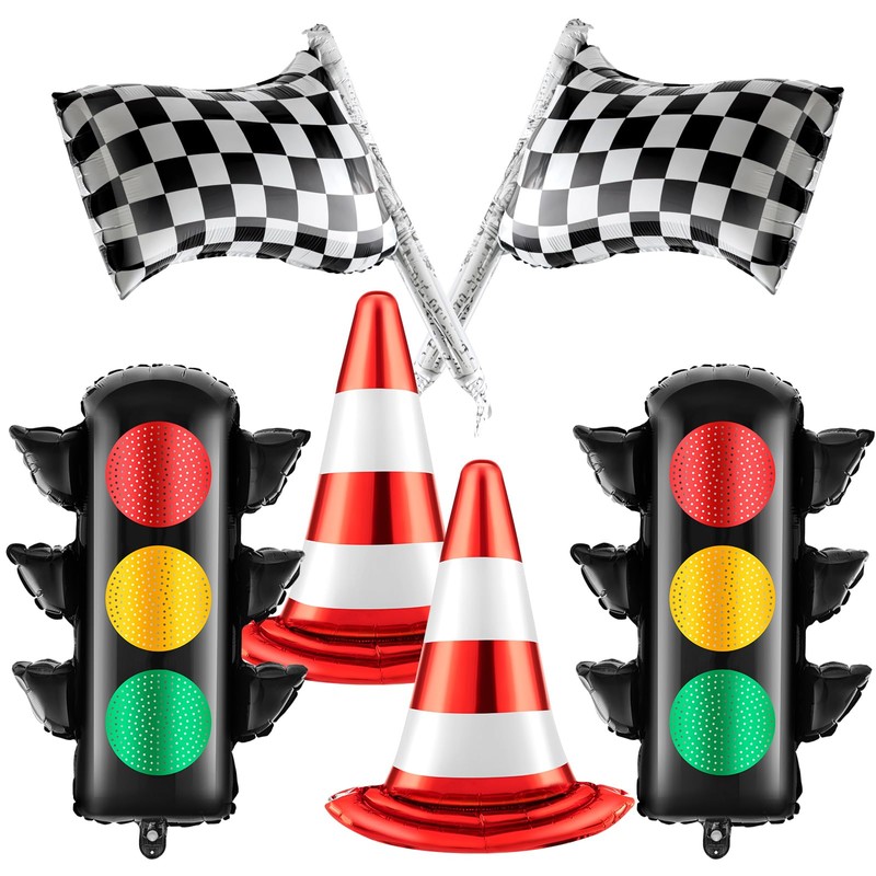 - Captivating Traffic Theme Set: transform your event with our 6 piece traffic themed balloons, including 2 traffic light balloons, 2 free-standing racing cones, and 2 checkered foil balloons; Ideal for construction or road-themed parties, these striking decorations are bound to impress