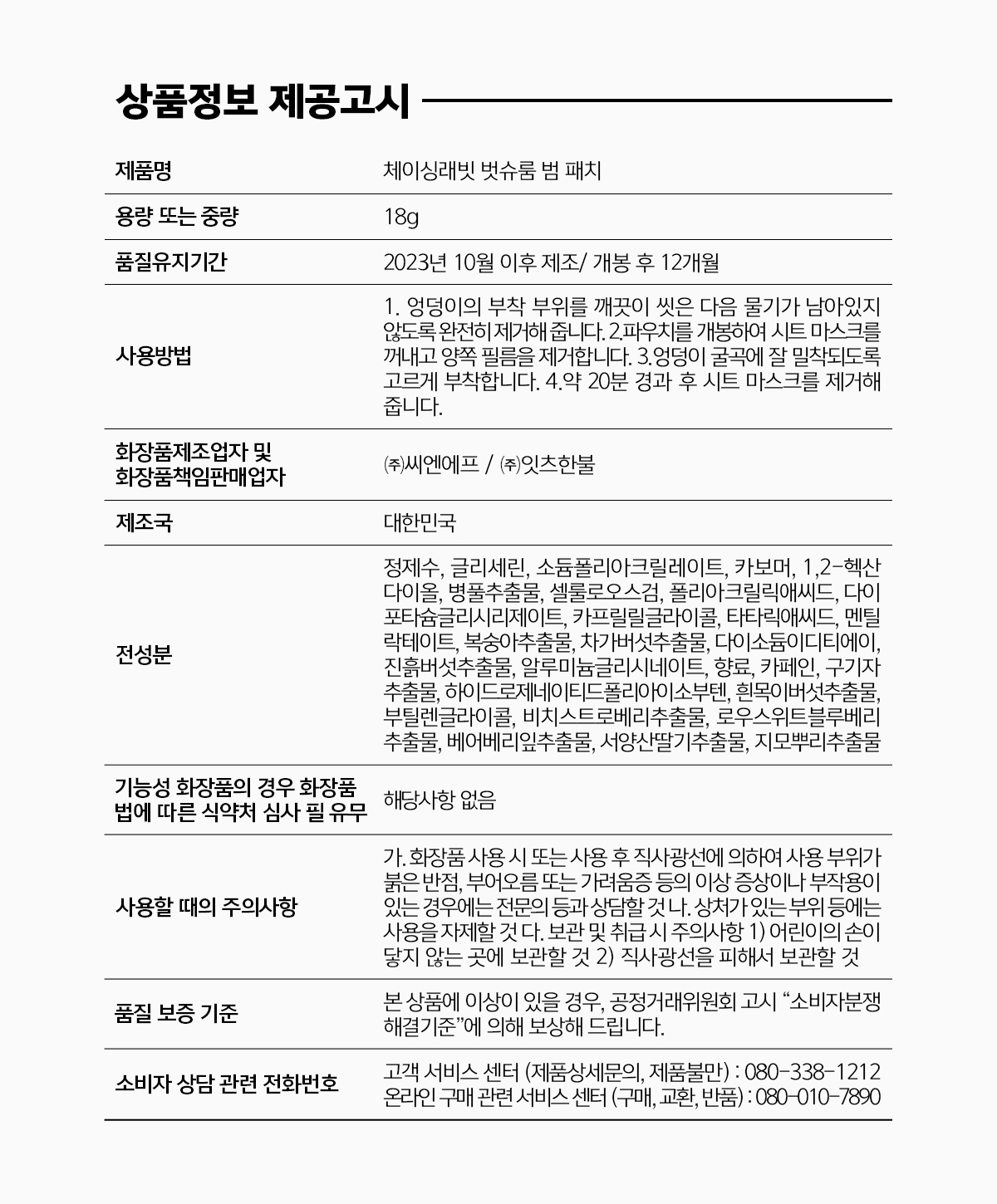 Chasing Rabbit 벗슈룸 범패치 18g (2개입 / 엉덩이패치 / 힙케어) Bestroom Bum Patch 18g (2 pcs / Butt Patch / Hip Care)