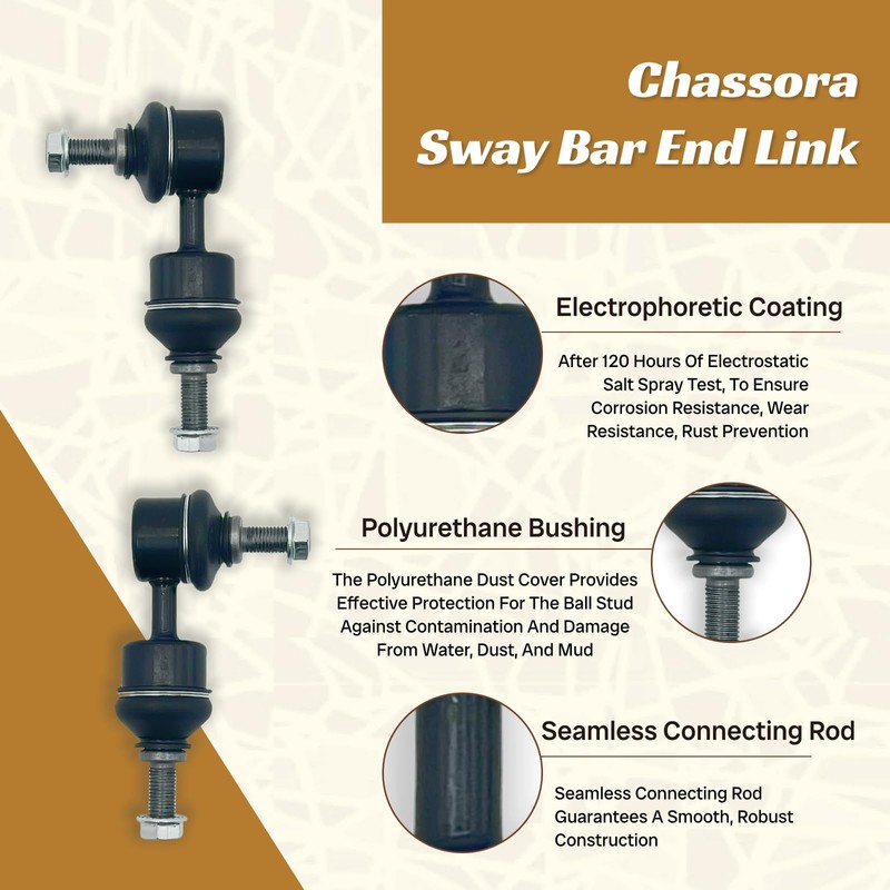 - 【High Quality】We meticulously employ electroplating techniques, paired with precision bushings. This combination exudes a luxurious sheen and texture, while also offering wear resistance, corrosion prevention, rust protection, and dust exclusion, providing top-tier protection for the stabilizer bar, thereby extending its service life. This is the best choice for people who want the best driving experience.