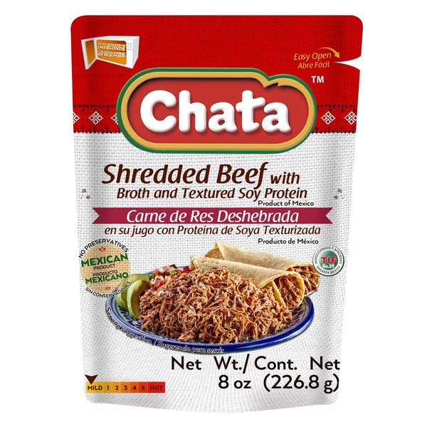 - HEALTH CONSCIOUS: Chata is proud to offer healthier meal options using only 100% beef meat, and no preservatives. Shredded beef with broth and textured soy protein is the perfect product for someone that wants to eat something as equally delicious as it is healthy