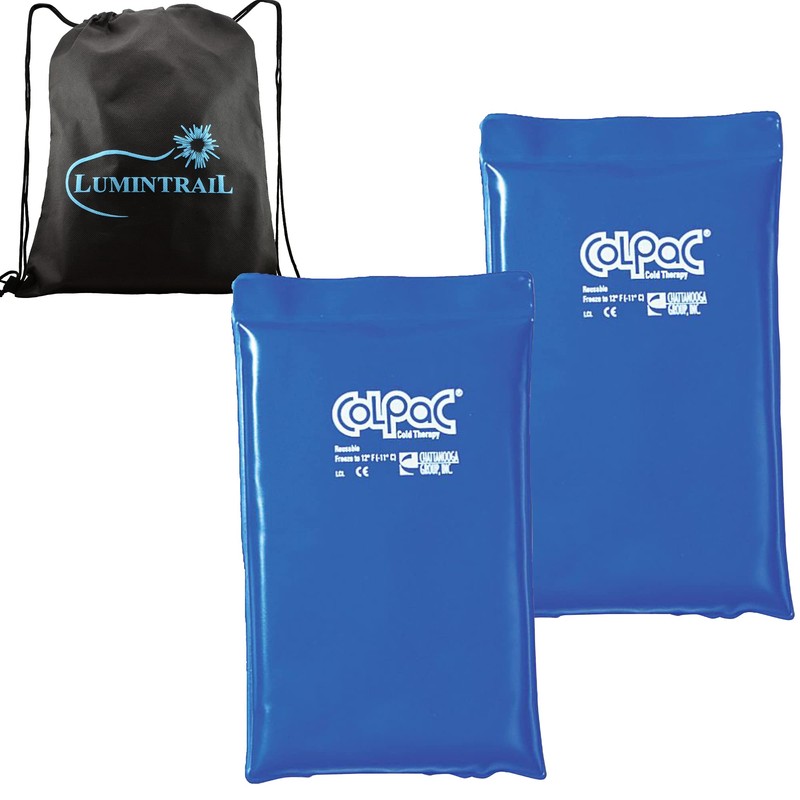 Chattanooga ColPac, Reusable Gel Ice Pack for Knee, Arm, Elbow, Shoulder, Back - Aches, Swelling, Bruises, Sprains, Inflammation, Half Size 2 Pack Bundle, Blue Vinyl, with a Lumintrail Bag