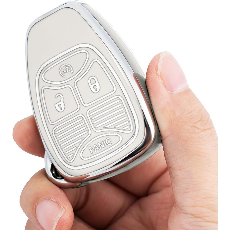 CHATYYD for Jeep Key fob Cover, Soft TPU Car Key Cover Case for 2010-2017 Jeep Wrangler 2010-2017 Jeep Compass 2010-2017 Jeep Patriot Accessories(4 Buttons) (White)