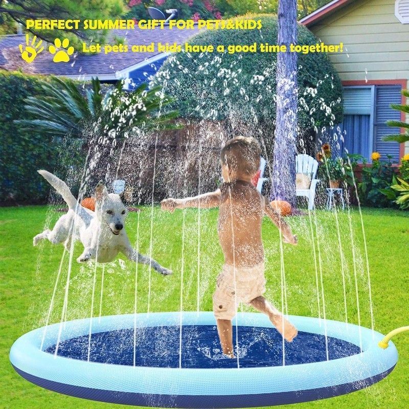 - Cool Outdoor Water Toys: 100cm/39.4inch small pet splash pad, perfect for small dogs and kids under 6 years old, provides enough play space for 1-2 kids and dogs. The small dog pool won't take up too much space, allowing even small outdoor areas to enjoy summer water fun. Bring joy to your furry friends and little ones with dog sprinkler pad!