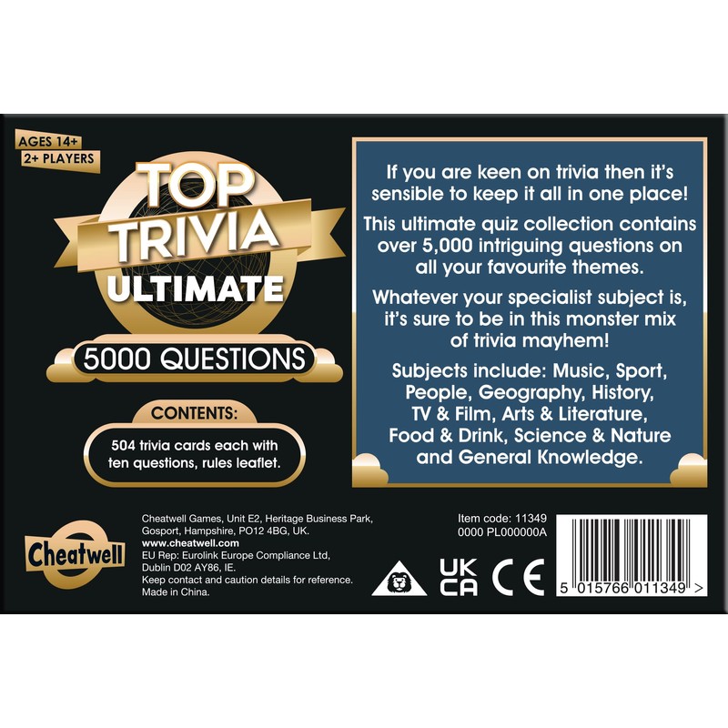 - This ultimate trivia pack contains 5,000 questions on all of your favourite subjects.