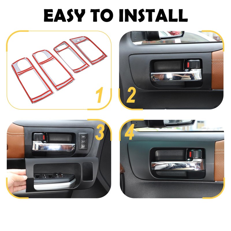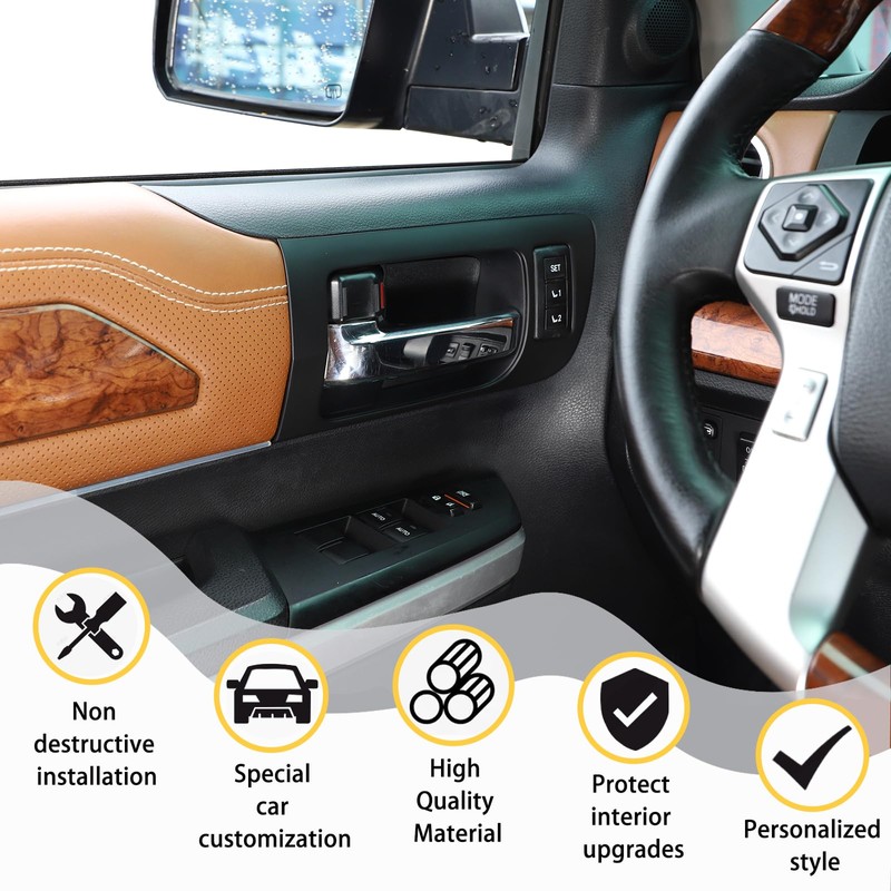 - Inner Car Look Interior Door Handle Panel Cover Trim for Toyota Tundra 2014-2021(High configuration)