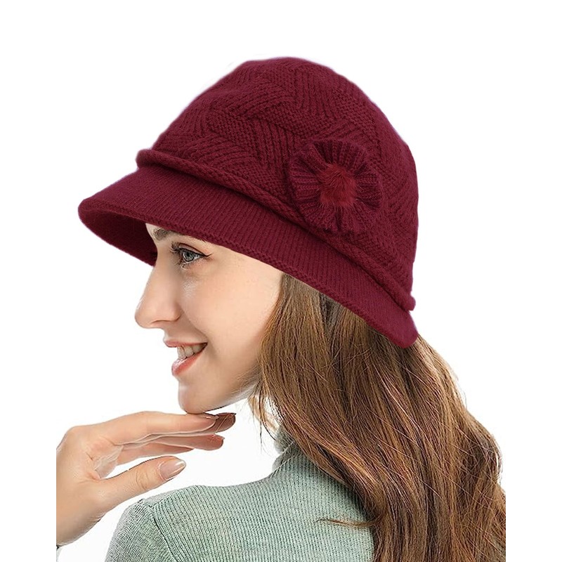 CheChury Women's Wool Winter Hat Warm Knitted Hat Women Beanie Hat Retro Fedora Hats Women Bell Hat Cashmere Hat Women's Bowler Hat Winter Knitted Hat with Peak Women's Melon Hat, B wine