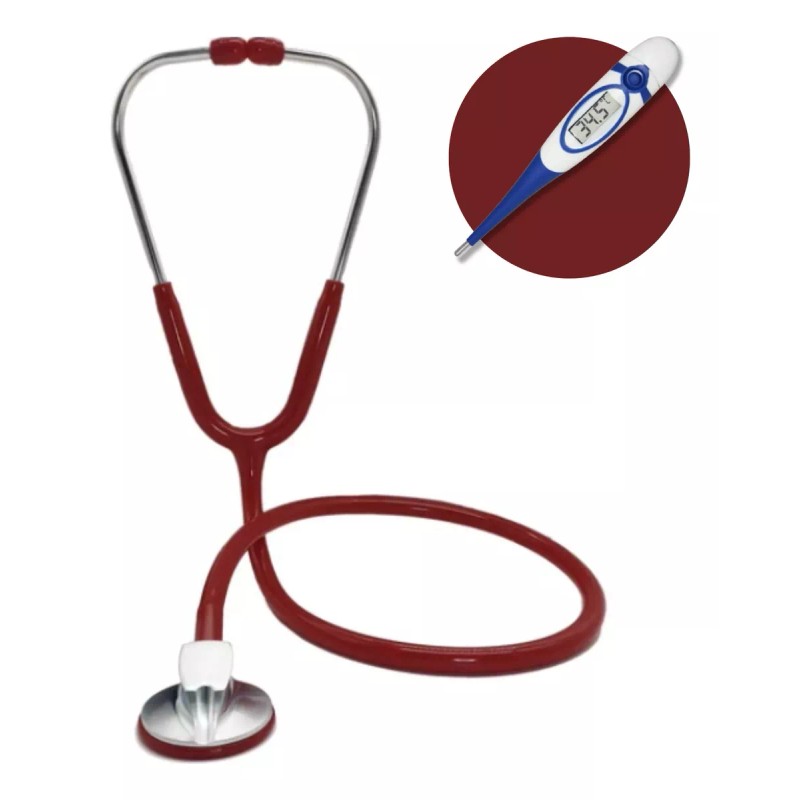 Ser de Estetoscopio Profesional de una Campana y Termometro Digital Flexible CheckAtek: Calidad Premium para Auscultación Precisa.