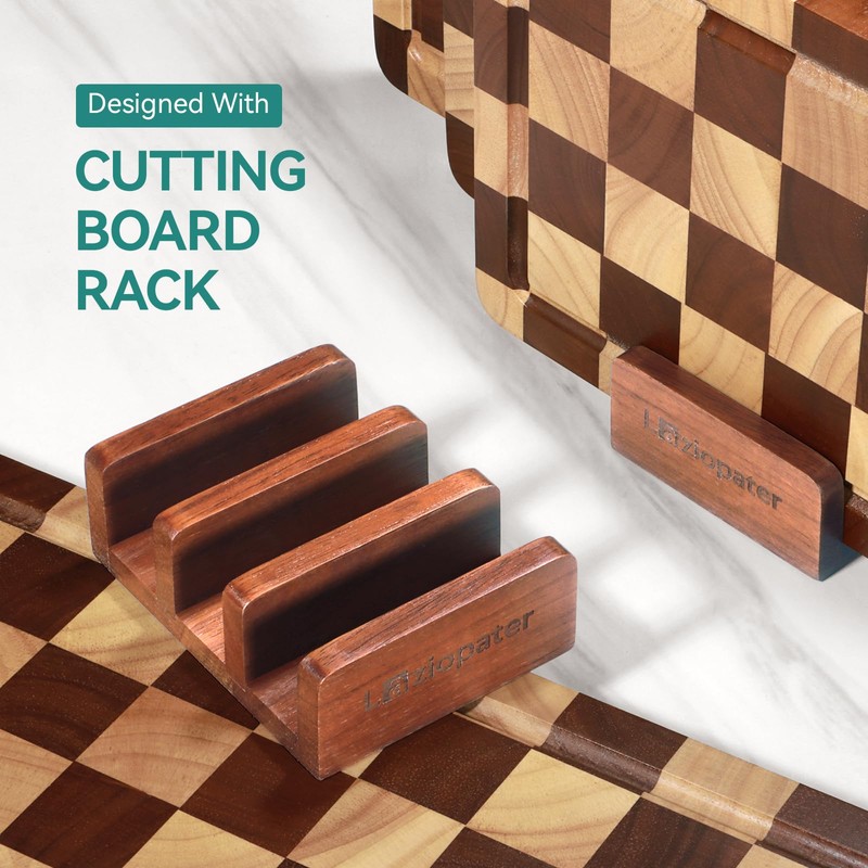 Checkerboard Cutting Board, Acacia Wood Cutting Board, Solid Wooden Chopping Board Set of 3 for Kitchen with Holder with Deep Juice Grooves & Built-in Handles, for Meat, Vegetables and Fruits