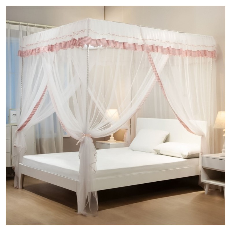 Checkered Curtain-Style Bed Mosquito Net (150x200cm) Pink 3ea
