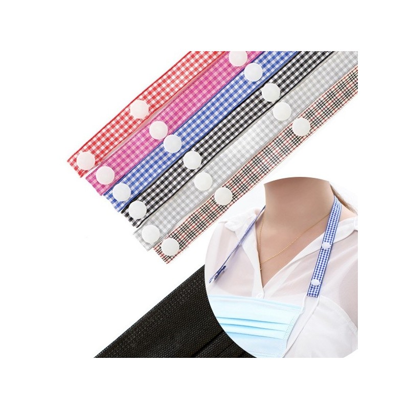 Checkered Mask Strap / Mask Necklace Lanyard Free / Gray 10ea