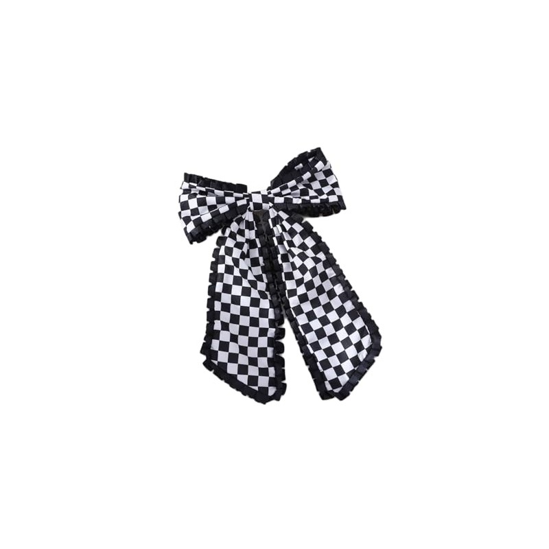 - Large Big Checkered Plaid Hair Clips For Women Girls Black White Ponytail Holder