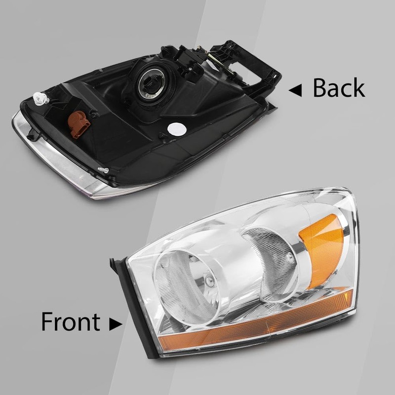 CHEDA Headlights Assembly w/Light Bar Compatible with Dodge Ram 1500 2006-2008/Fit Dodge Ram 2500 3500 2006-2009 Headlamps Clear Lens Chrome Housing Amber Reflector Faros Conjunto De Faros