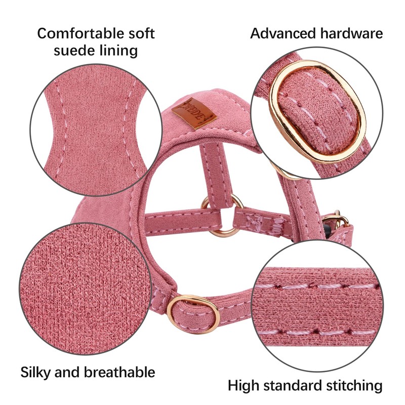 CHEDE No Pull Puppy Harness and Multifunction Dog Leash Set- 8 Colors Soft Adjustable No Choke Escape Proof Cute,Lightweight Pet Vest Harness for Small and Medium Dog (M, Antique Pink)