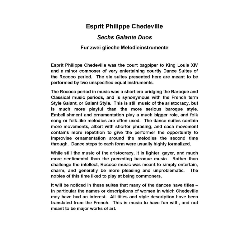Chedeville 6 Gallant Duos for Soprano or Tenor Recorder Duets 6 Dance Suites