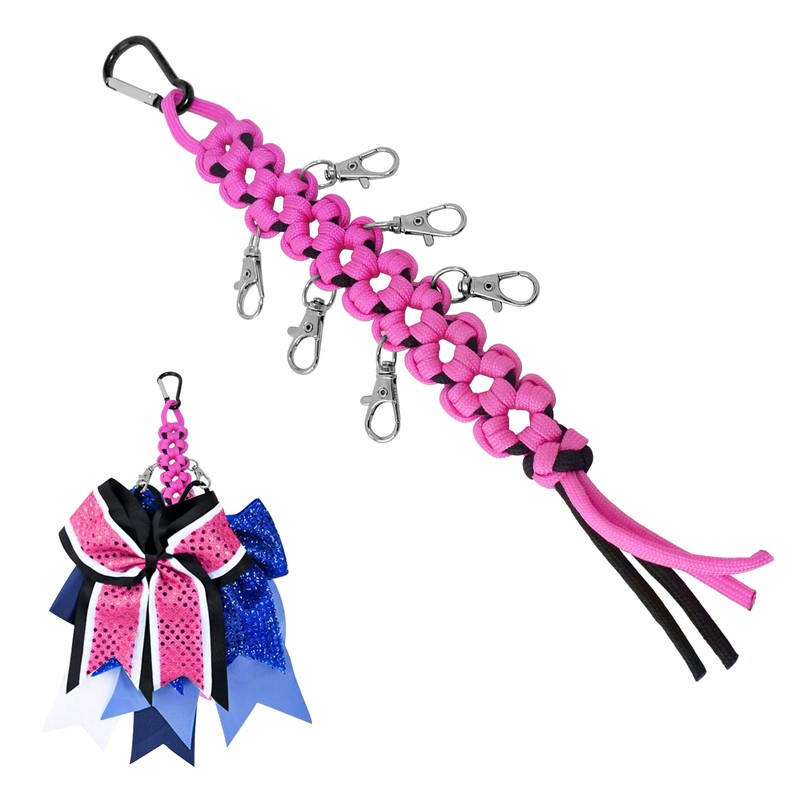 Cheer Bow Holder - Cheerleader Backpack Bow Organizer - Durable Paracord Hair Bow Hanger Cheer Bag Accessories - Cheerleading Gift for Cheer Teams - Pink/Black
