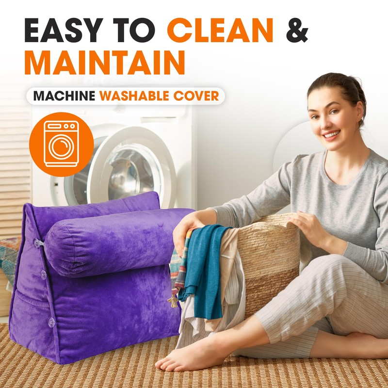 - EASY MAINTENANCE & PORTABLE: The plush, removable cover is machine washable, making care a breeze. Lightweight and portable, this reading & bed rest pillow can be used in bed, on the couch, or anywhere you need extra comfort and support.