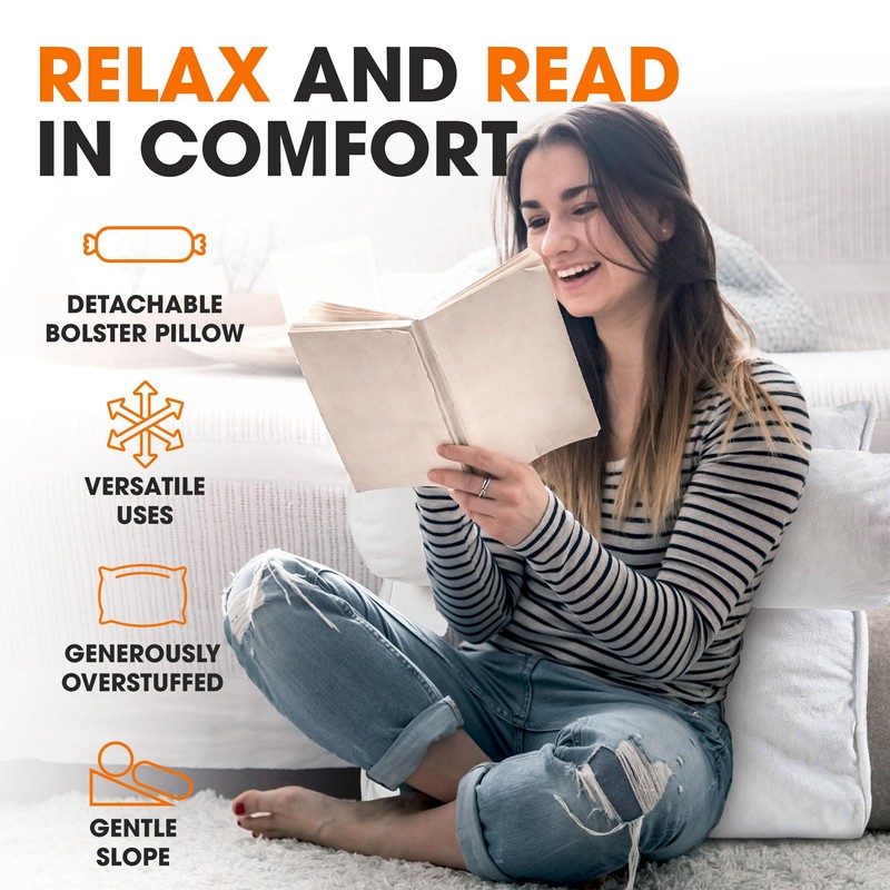 • PORTABLE WEDGE READING PILLOW: The plush, soft cover is removable and machine washable for easy maintenance. Lightweight and portable, these reading & bed rest pillows can be used anywhere—on your bed, couch, or even the floor—providing comfort wherever you need it.