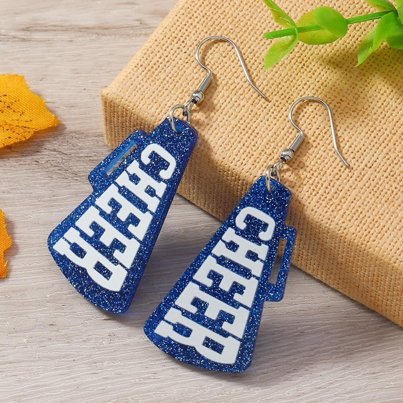 CHEER Megaphone Dangling Earrings Lightweigt Rugby Football Game Day Earrings for Fans Players, 1, Resin, No Gemstone